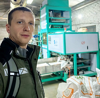 Полуавтоматическая линия для вакуумной фасовки сыпучих продуктов 10-25 кг. Форма упаковки Брикет