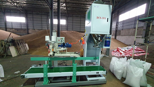 Оборудование для упаковки в мешки хорошо сыпучих продуктов, модель DCS-60, в комплектации с автоматической мешкозашивочной машиной GK35-6A.
