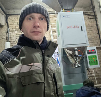 Весовой дозатор для хорошо сыпучих продуктов в мешки открытого типа 20-50 кг.