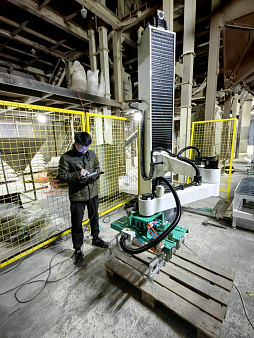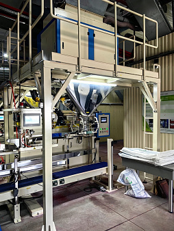 Автоматическая упаковочная машина для хорошо сыпучих продуктов в мешки 25-50 кг.