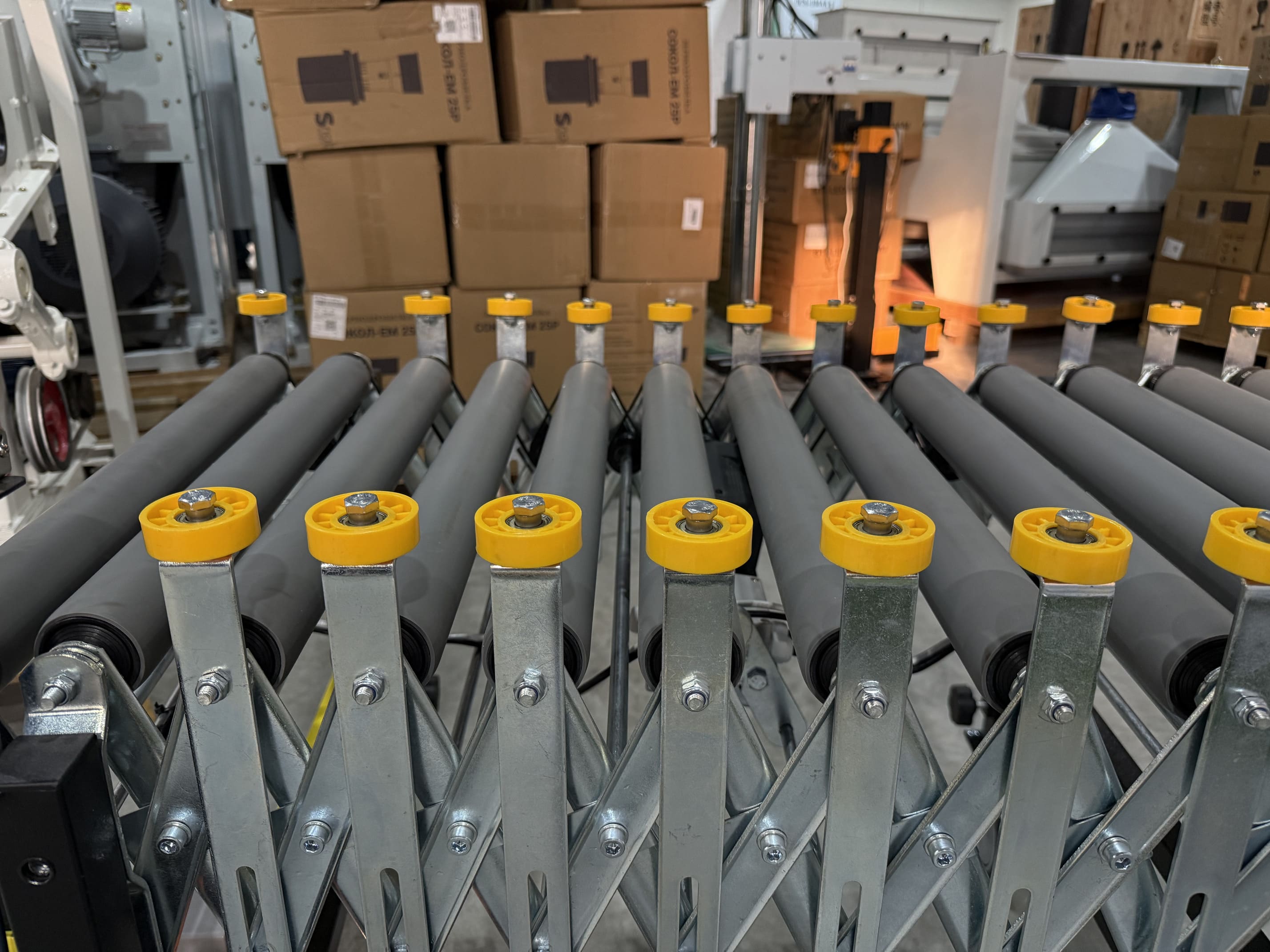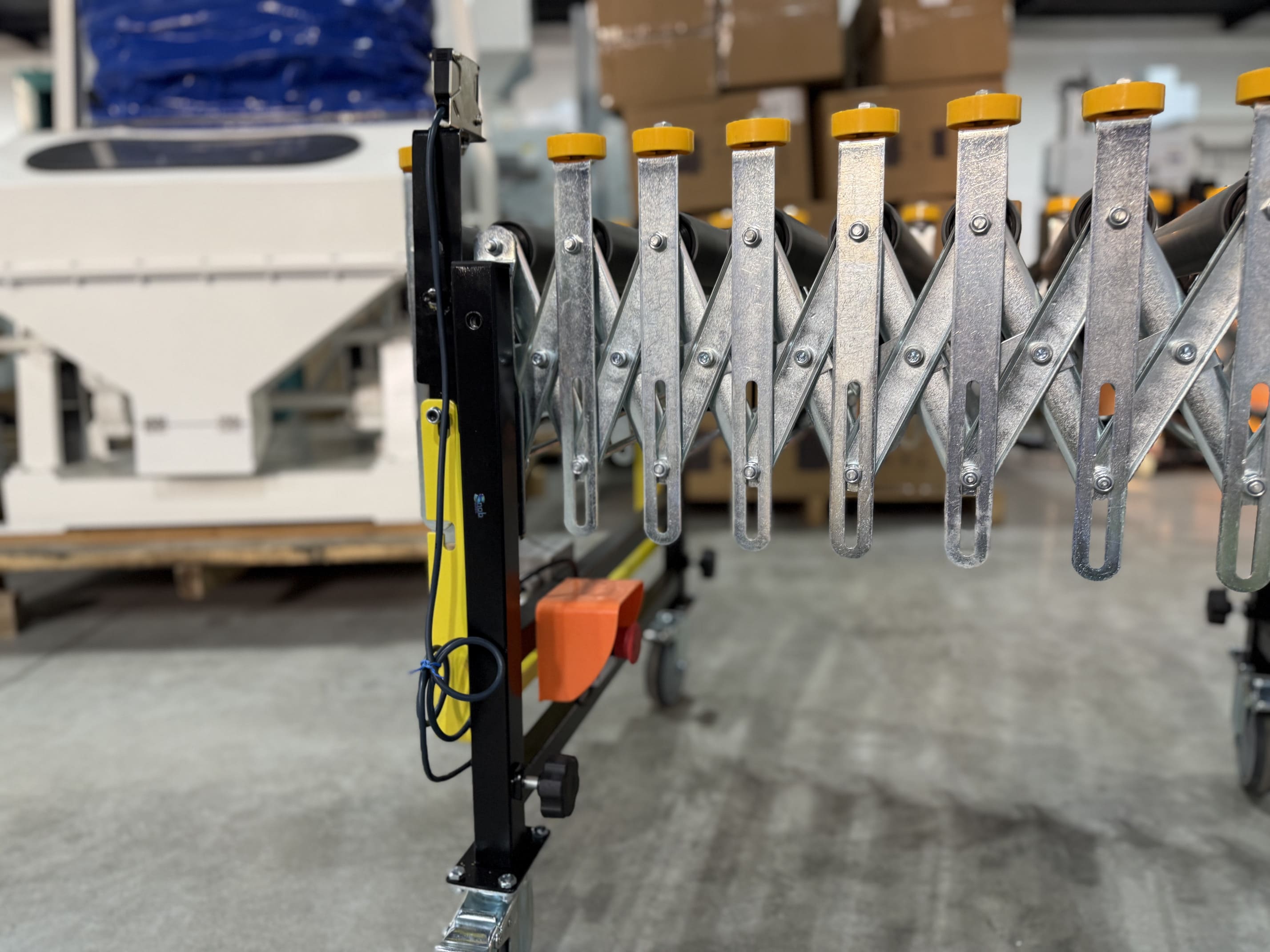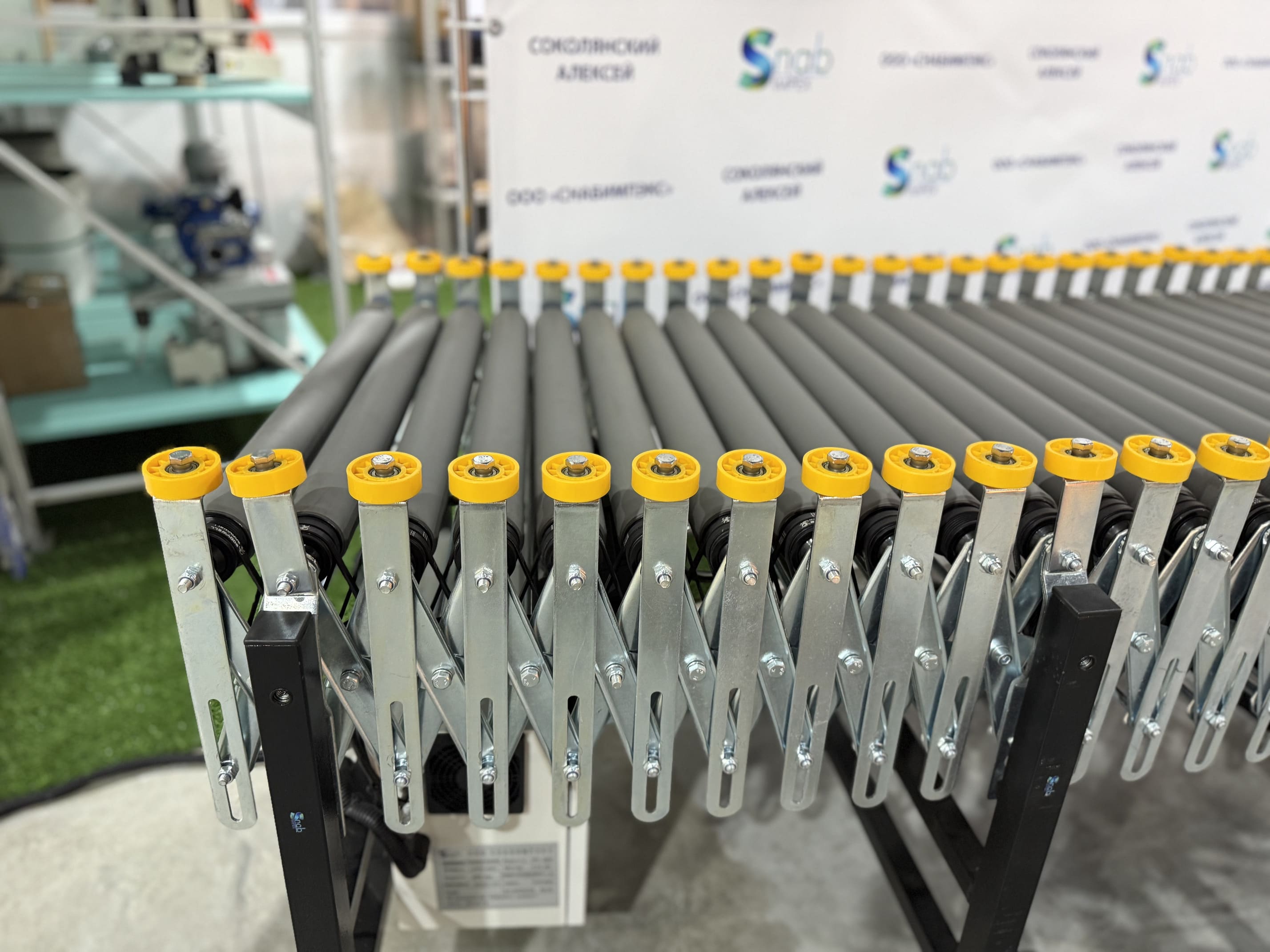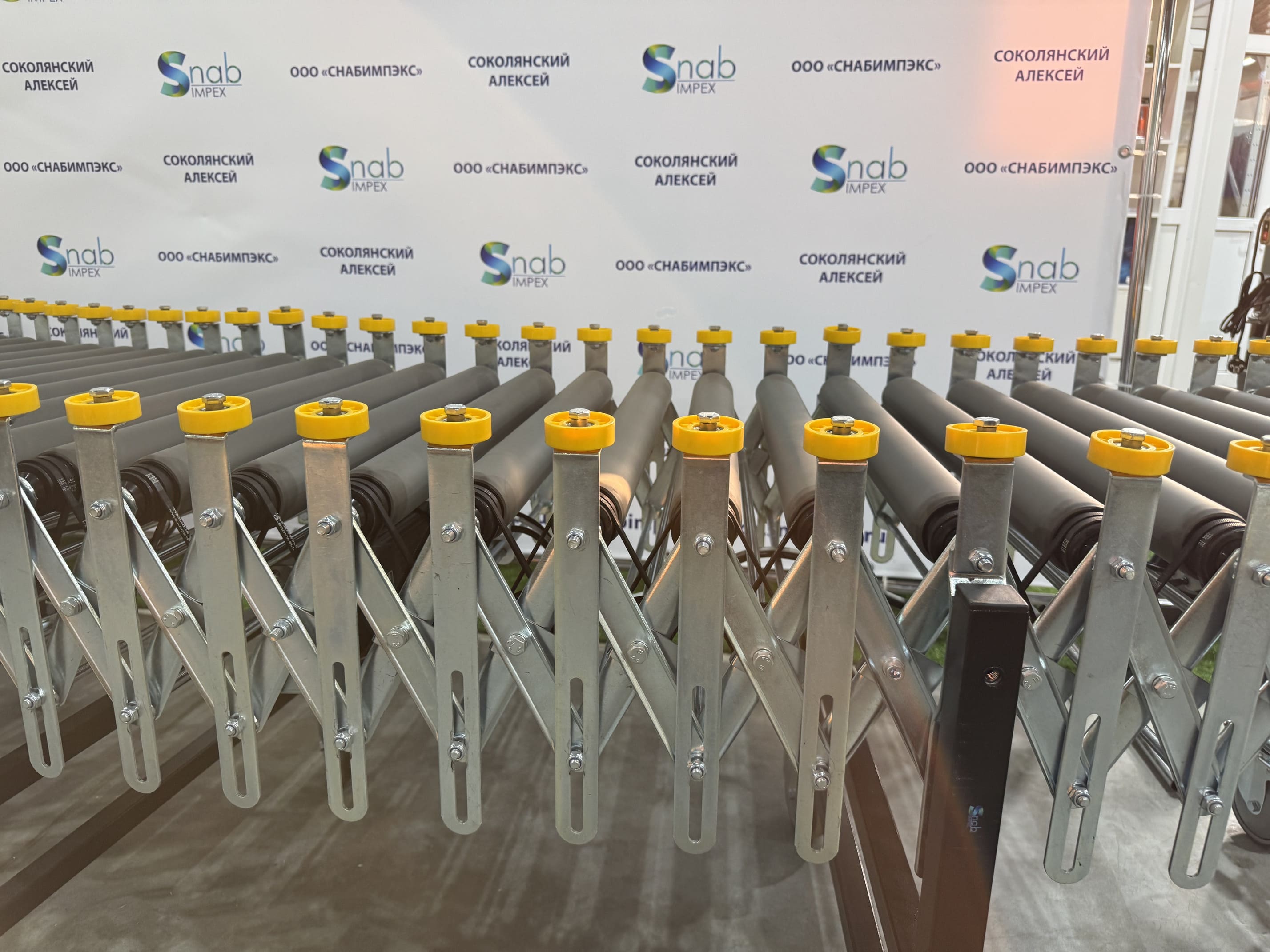 Регулируемая длина: Конвейер имеет раздвижную конструкцию, позволяющую изменять его длину от 4 до 28 метров, адаптируясь к различным задачам и конфигурациям помещений.